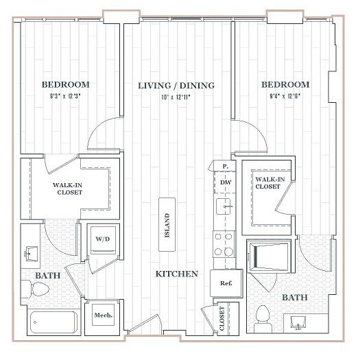 Modelo de apartamento: 1 Bedroom - 1 Bath | a041 Dormitorio, 1 Baño, 615 sq ftDisponible Ahora![]()