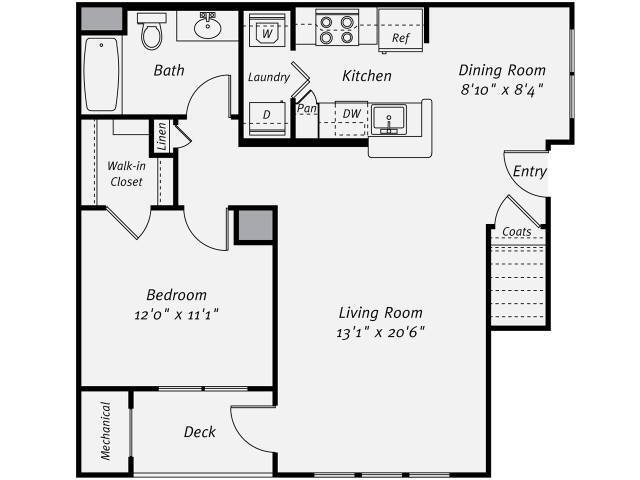 Modelo de apartamento: A2$2,6181 Dormitorio, 1 Baño, 789 sq ftDisponible Ahora![]()