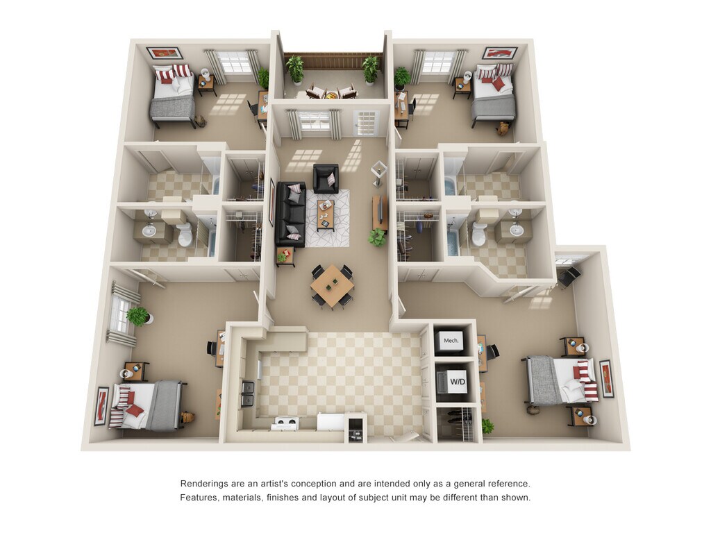 Modelo de apartamento: 4BR/4BA - Flat$4494 Dormitorios, 4 Baños, 1373 sq ftNo Disponible![]()