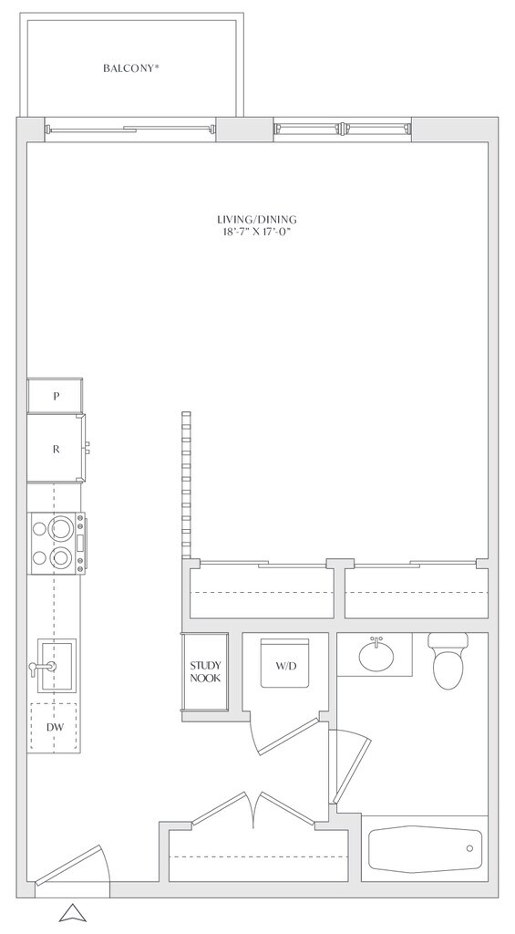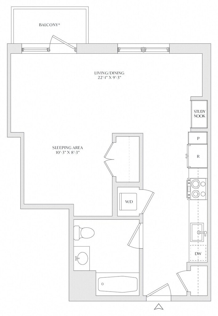 Modelo de apartamento: Studio-S3Llame para PreciosEstudio, 1 Baño, 630 sq ftNo DisponibleStudio-S3 - Plano 1 1 Dormitorio