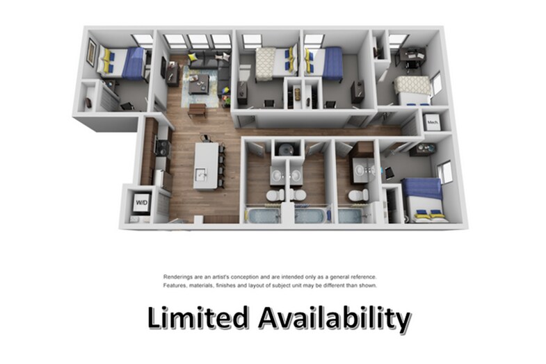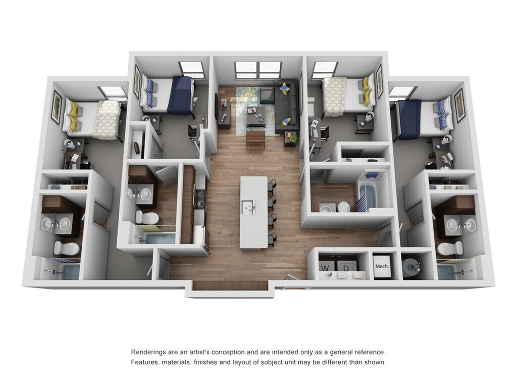 Modelo de apartamento: 3 Bedroom 3 Bathroom A$1,6193 Dormitorios, 3 Baños, 1091 sq ftDisponible Ahora3 Bedroom 3 Bathroom A - Plano 1 4 Dormitorios