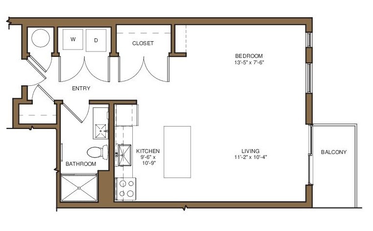 Estudio, 1 Baño, 642 pies²Galería del Modelo