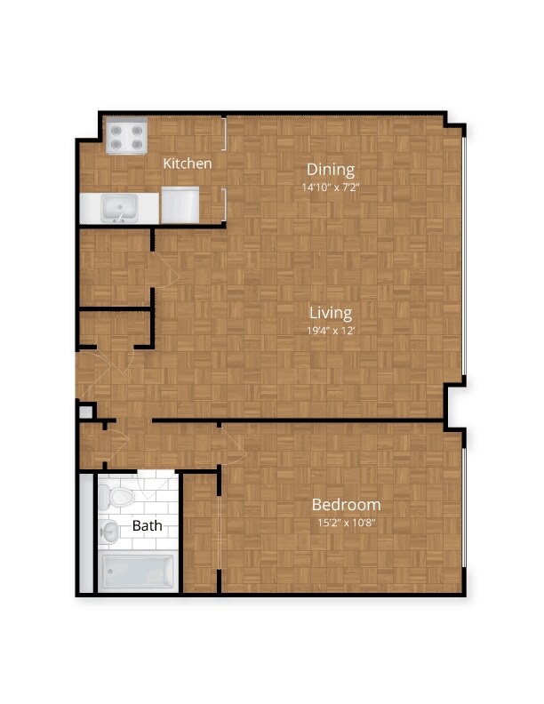 Estudio, 1 Baño, 311-543 pies²Disponible AhoraGalería del Modelo