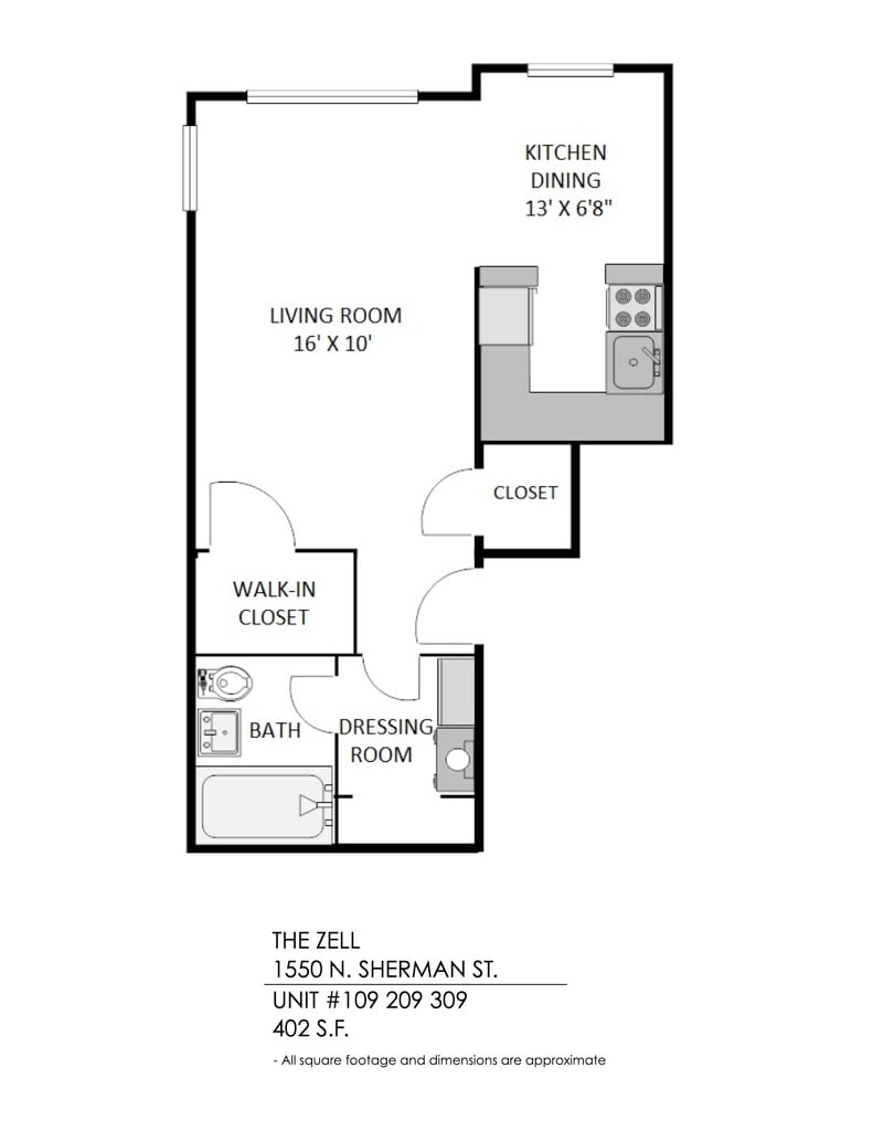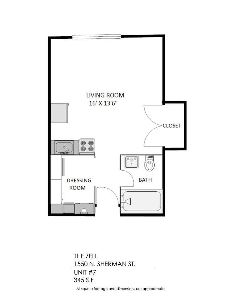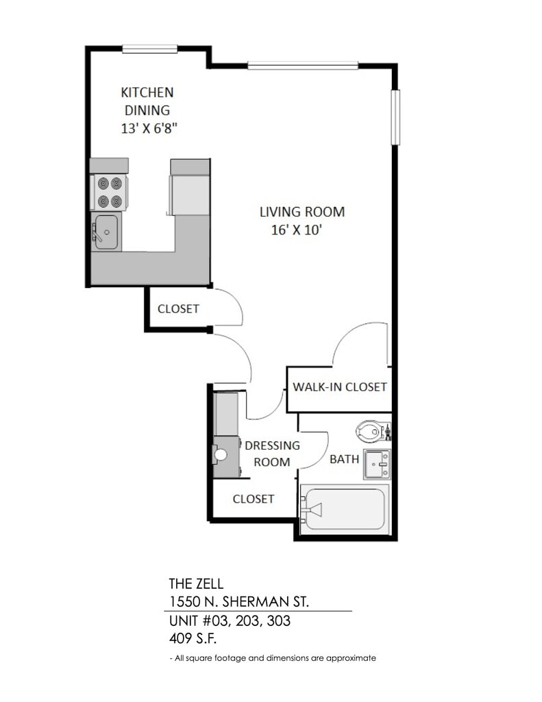 Estudio, 1 Baño, 345-409 pies²Disponible AhoraGalería del Modelo