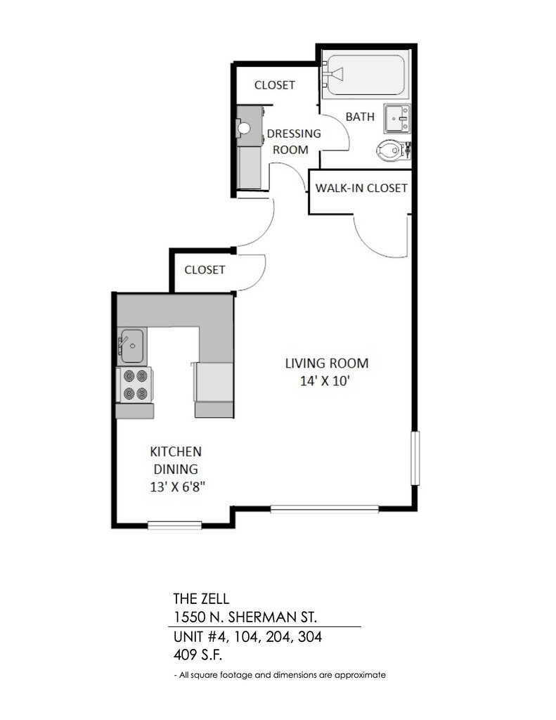 The Zell ofrece apartamentos de Estudio a 1 Dormitorio desde $830 con 345–574 pies cuadrados. Aquí está el precio actual y la disponibilidad: