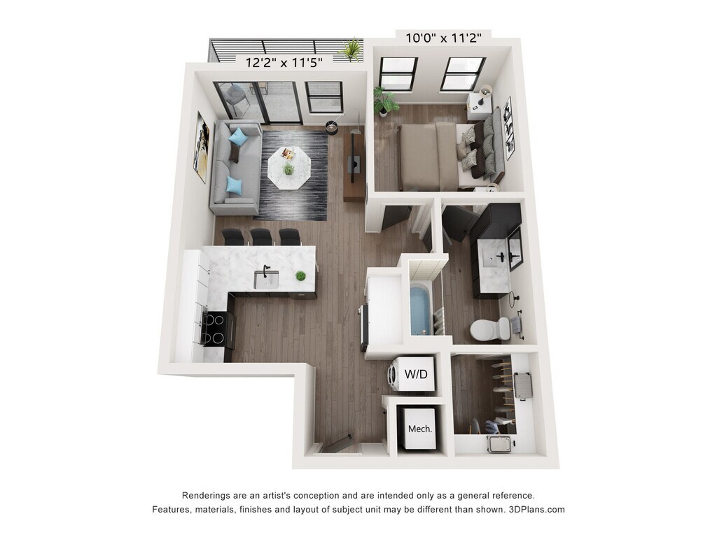 1 Dormitorio, 1 Baño, 592 pies²Disponible AhoraGalería del Modelo
