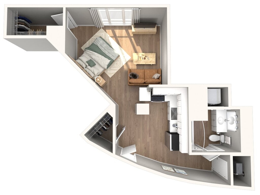 Estudio, 1 Baño, 587 pies²Disponible AhoraGalería del Modelo