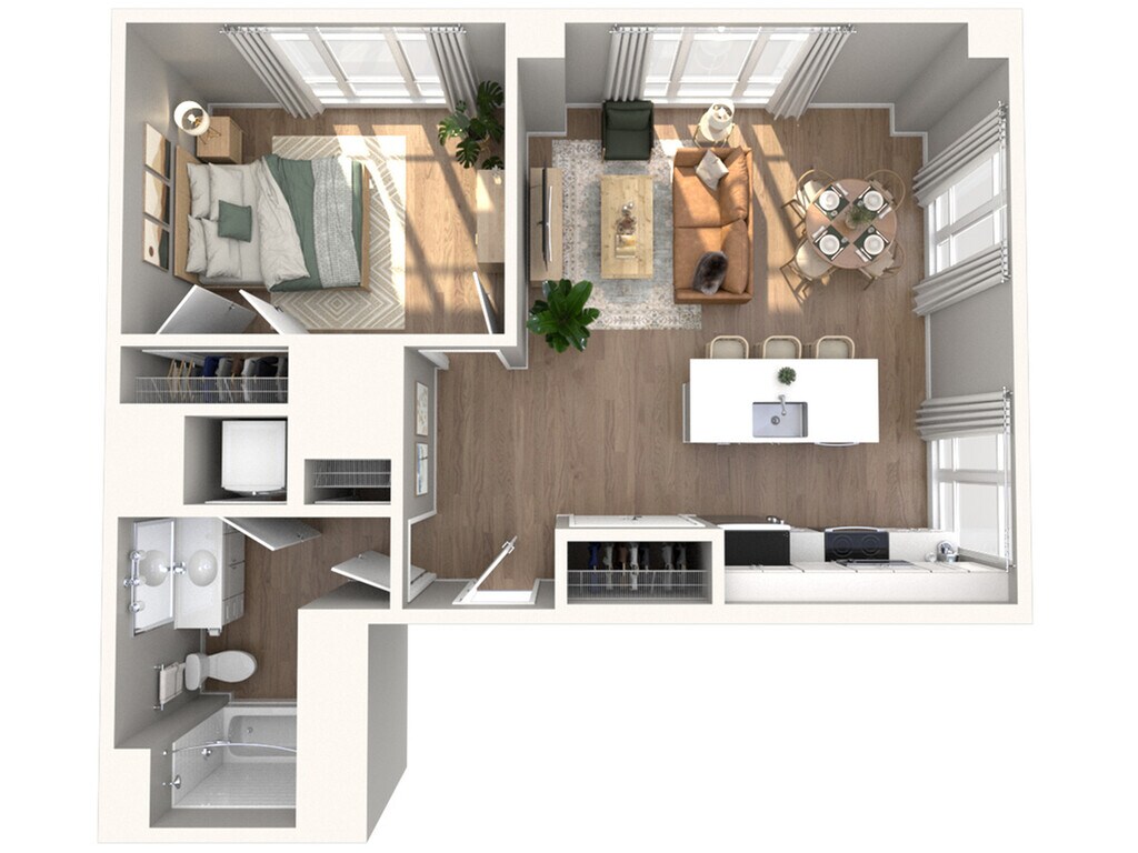 1 Dormitorio, 1 Baño, 829 pies²Disponible AhoraGalería del Modelo