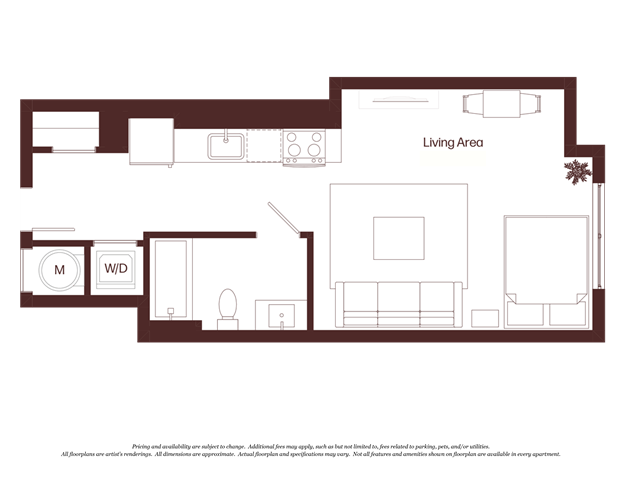 Estudio, 1 Baño, 465 pies²Disponible AhoraEl más grandeEsta opción tiene las unidades más grandes para este modeloGalería del Modelo