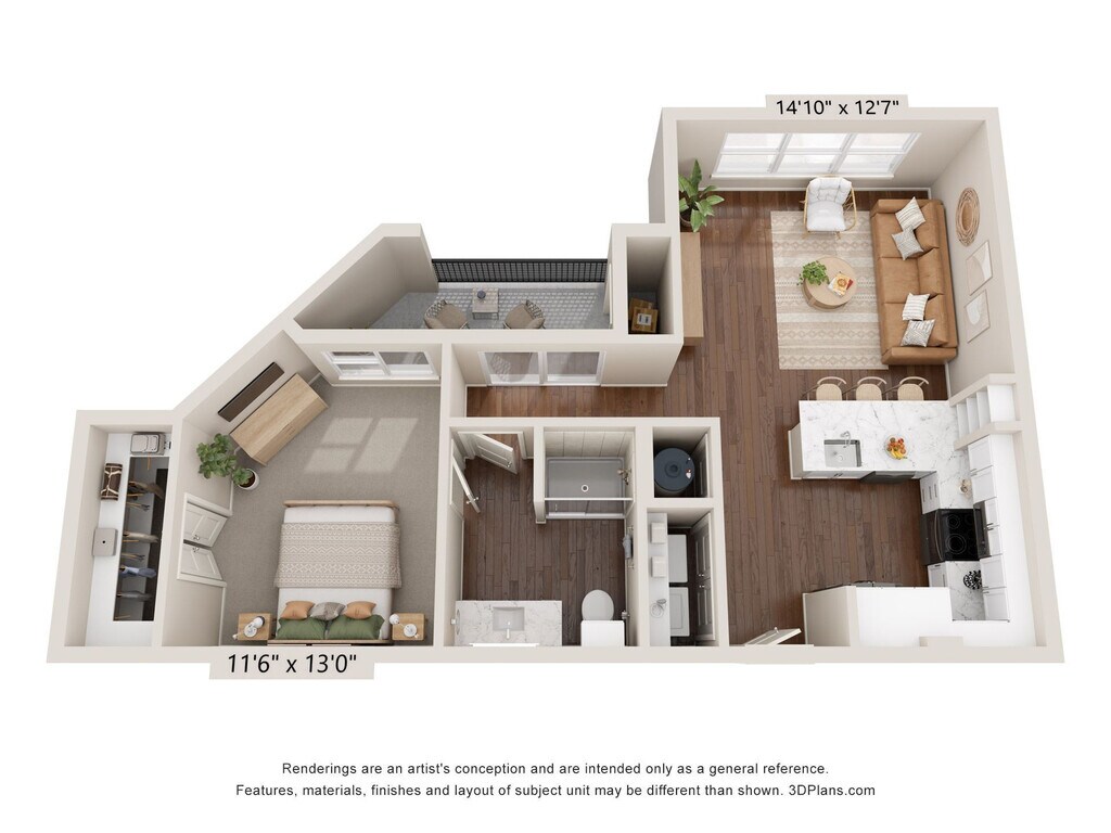 Estudio, 1 Baño, 614 pies²Disponible AhoraGalería del Modelo