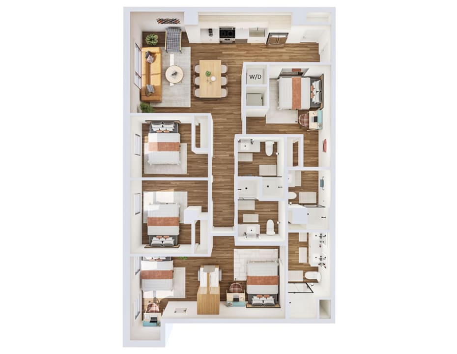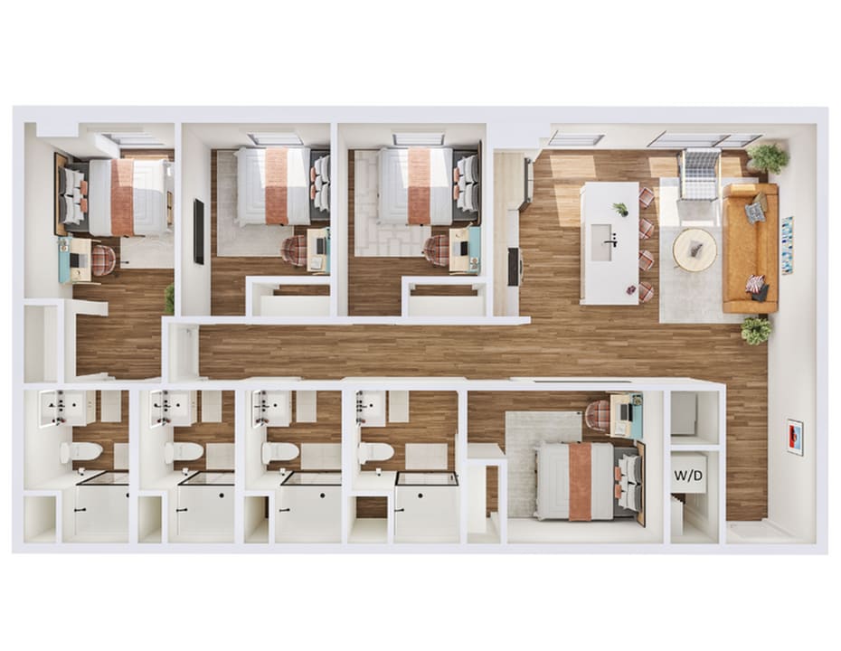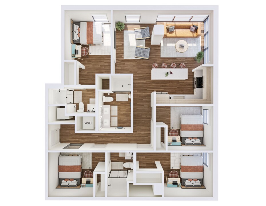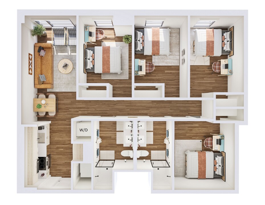 B3 - Plano 1 Unidad de apartamento: SharedModelo de apartamento: B3$1,0992 Dormitorios, 2 Baños, 956 sq ftDisponible August 14, 20264 Dormitorios