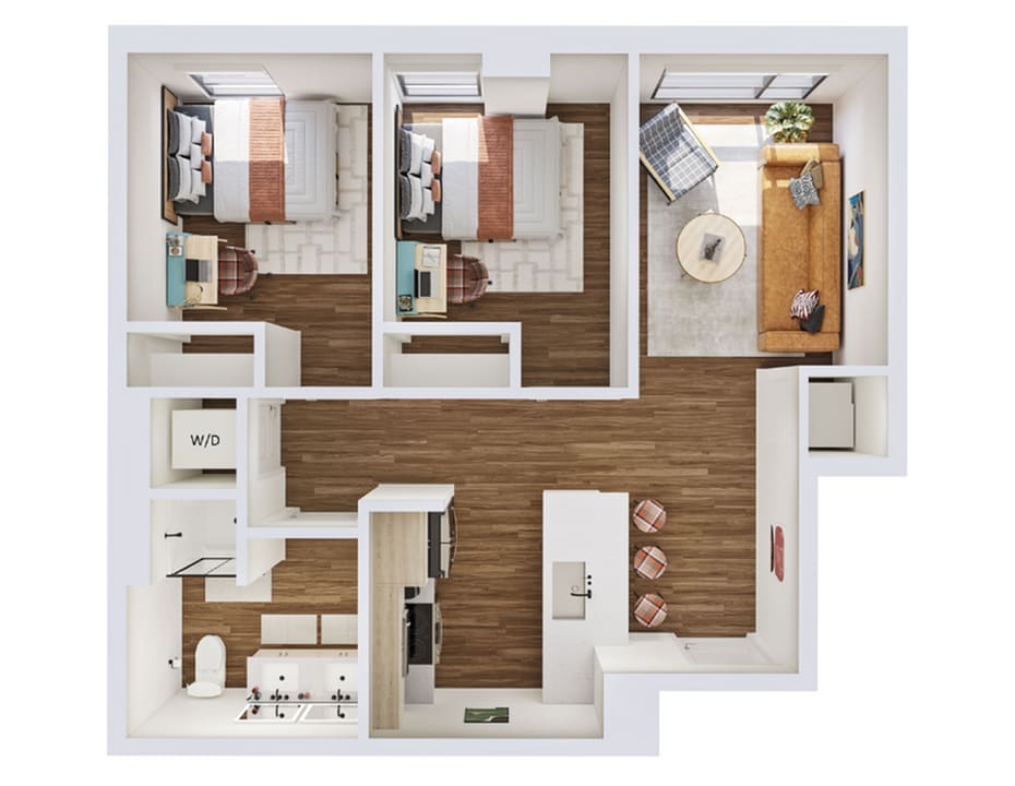 Modelo de apartamento: B5Desde $1,3002 Dormitorios, 2 Baños, 757 sq ftDisponible August 14, 2026![]()