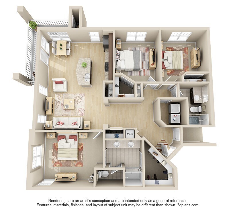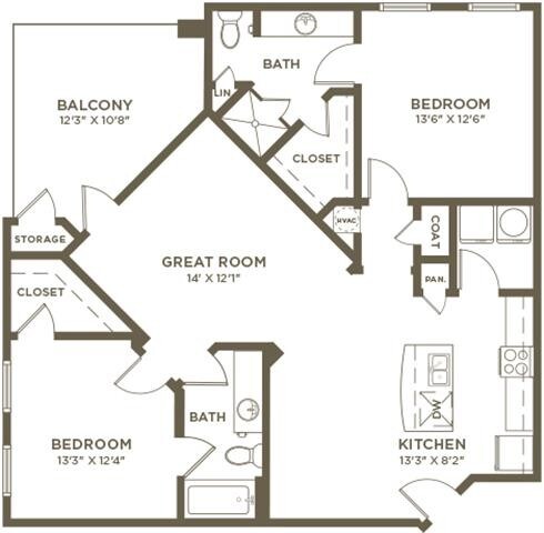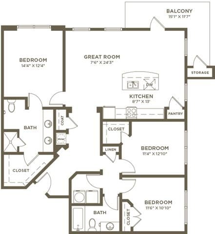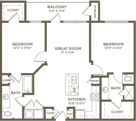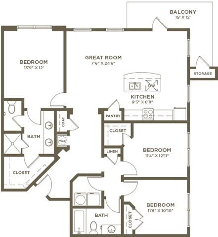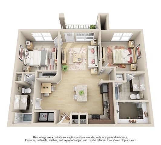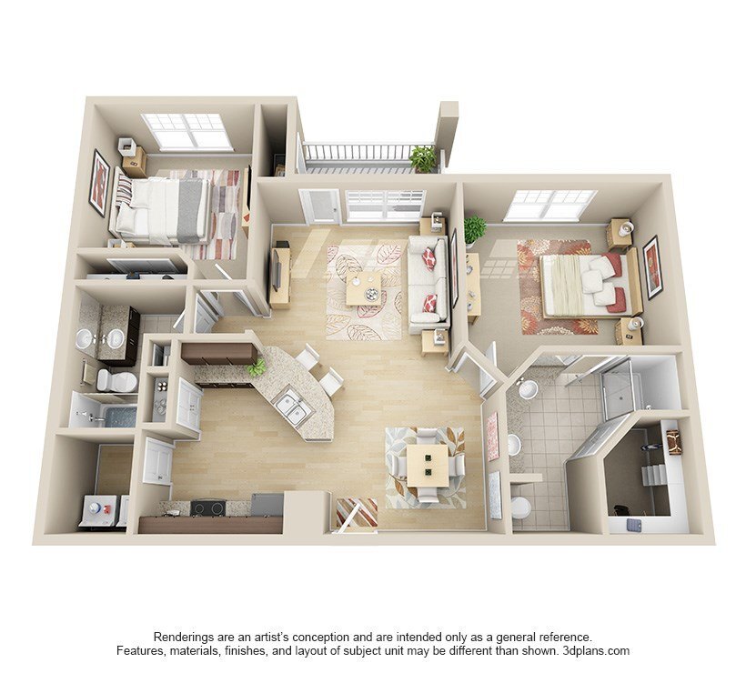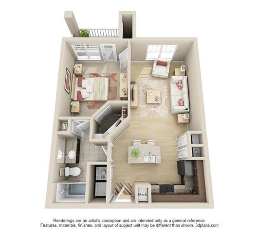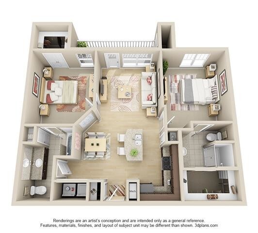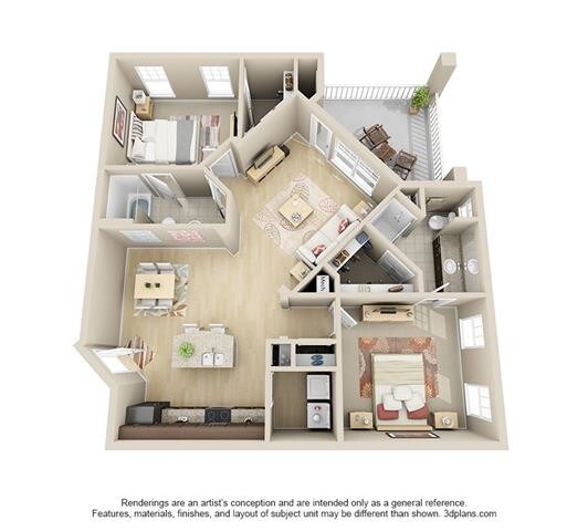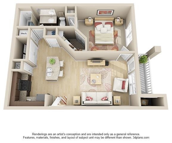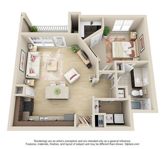 Modelo de apartamento: A7Desde $9971 Dormitorio, 1 Baño, 715 sq ftDisponible Ahora![]()