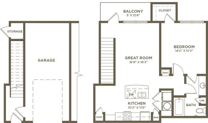 1 Dormitorio, 1 Baño, 715 pies²Disponible AhoraGalería del Modelo