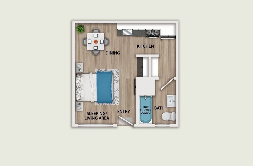 Studio - Plano 4 Unidad de apartamento: 228Modelo de apartamento: Studio$2,500Estudio, 1 Baño, 560 sq ftDisponible December 5, 20251 Dormitorio