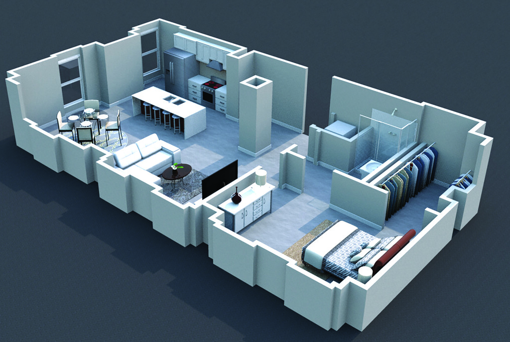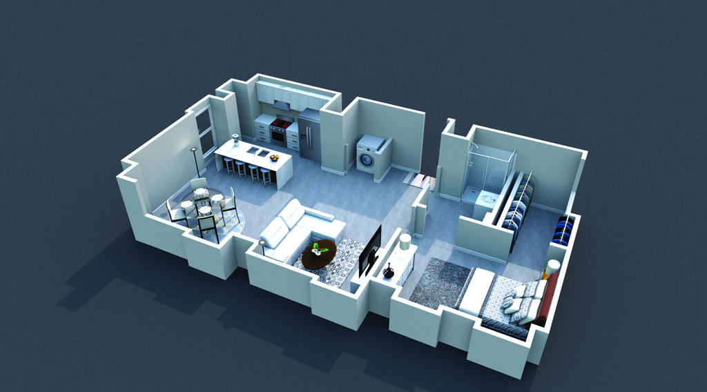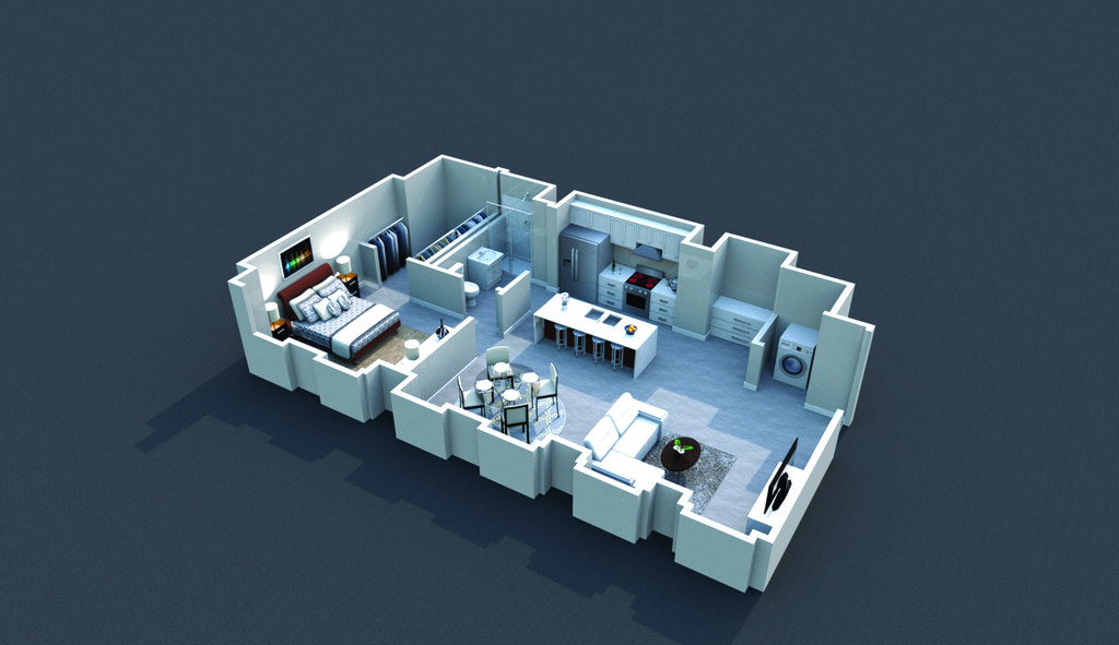 1 Dormitorio, 1 Baño, 700 pies²Disponible AhoraGalería del Modelo