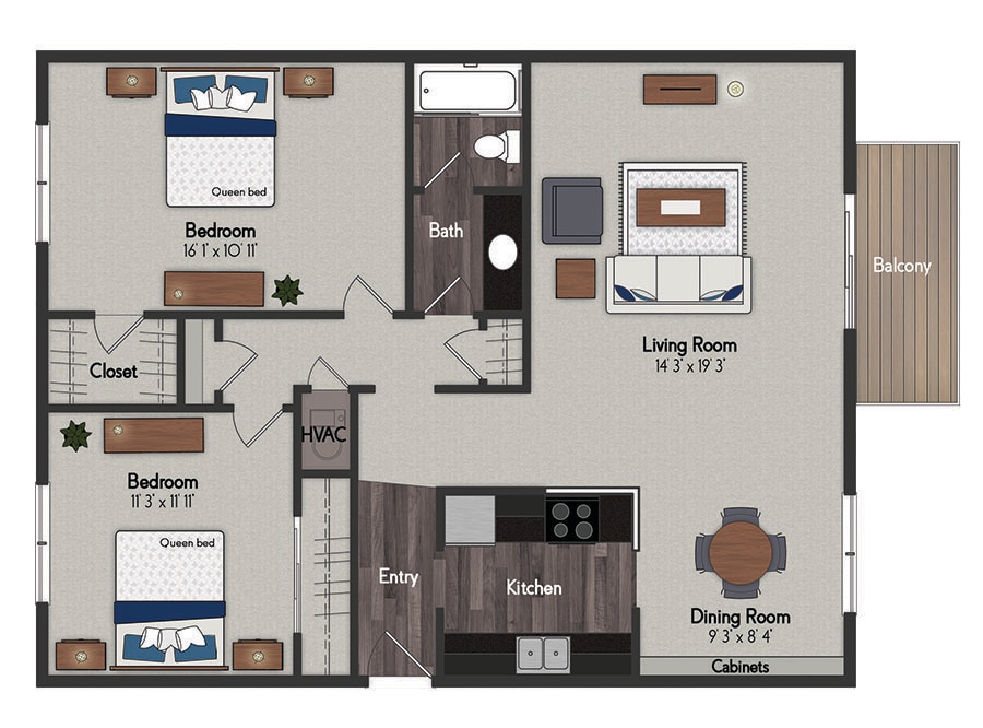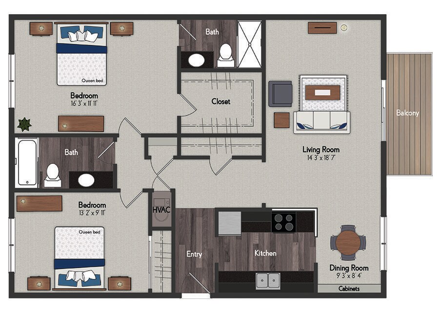 Modelo de apartamento: ChateauDesde $1,0201 Dormitorio, 1 Baño, 800 sq ftNo Disponible![]()
