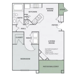 Modelo de apartamento: A2Desde $1,1401 Dormitorio, 1 Baño, 777 sq ftDisponible Ahora![]()