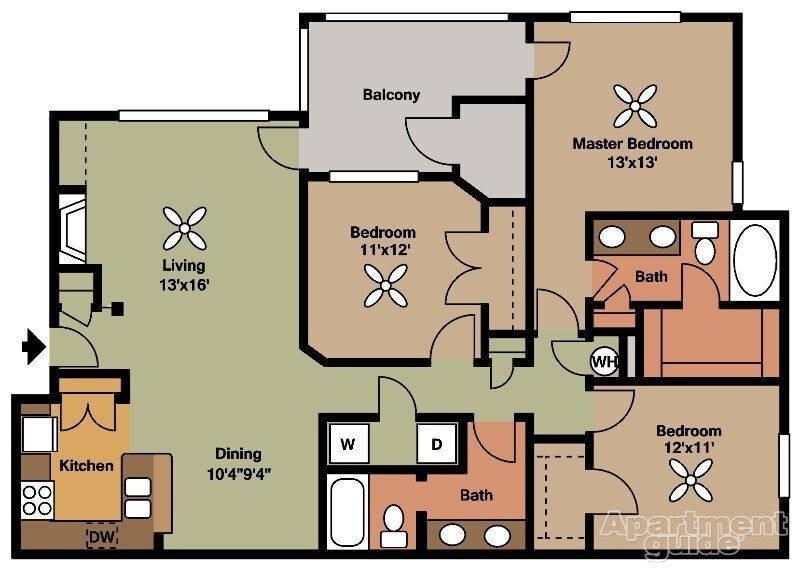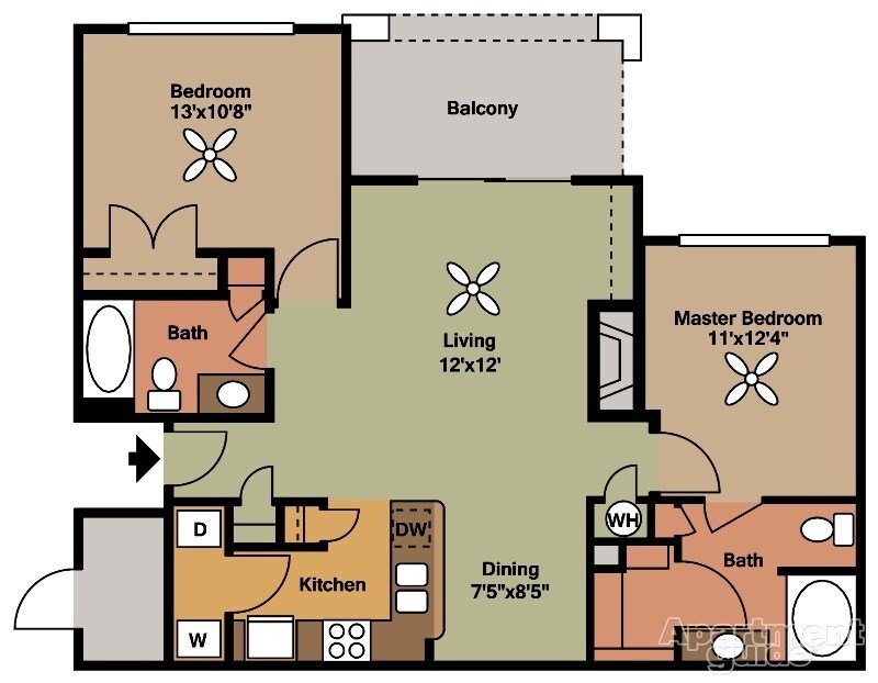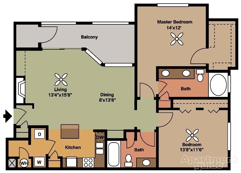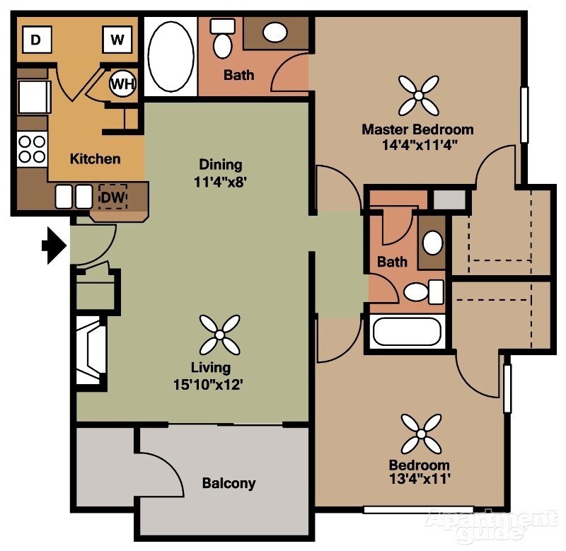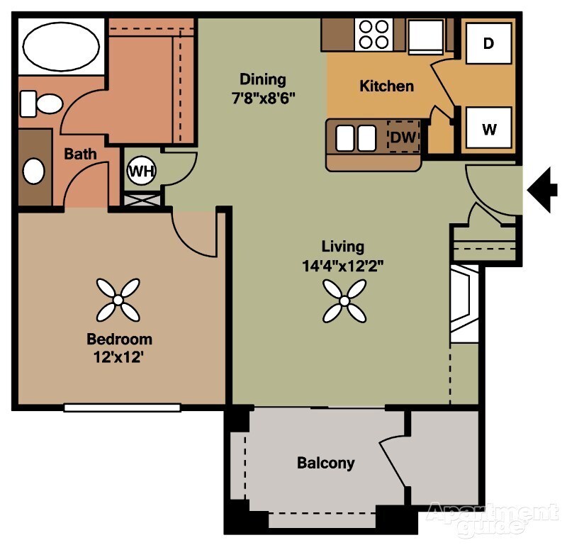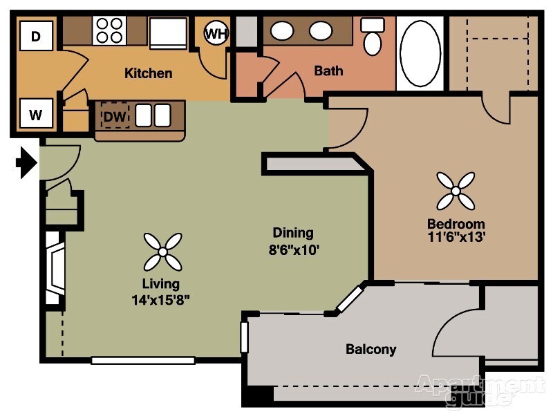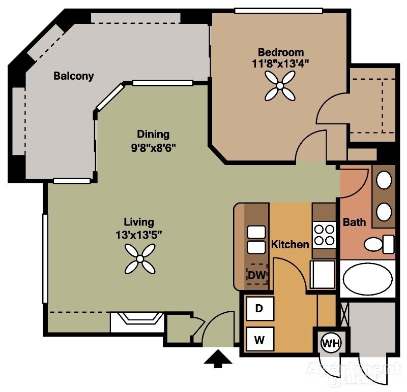 Modelo de apartamento: A1-IRDesde $9661 Dormitorio, 1 Baño, 692 sq ftDisponible Ahora![]()