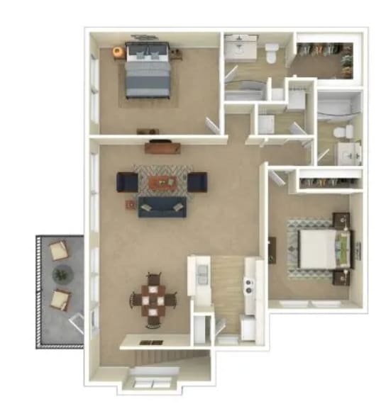 Modelo de apartamento: PerditaDesde $1,5302 Dormitorios, 2 Baños, 1258 sq ftDisponible Ahora![]()