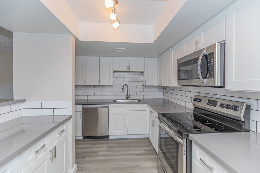 Los acabados contemporáneos y la iluminación renovada están dentro de cada uno de los cinco exclusivos planos de planta en Tides at Park View, con apartamentos de una, dos y tres habitaciones en alquiler. Adaptables a cualquier estilo de vida y para mejorar tu nivel de comodidad, encontrarás amplias encimeras de cuarzo, un horno de microondas y electrodomésticos de acero inoxidable. Increíbles pisos estilo madera y una lavadora y secadora hacen que sea la próxima casa de tus sueños. Da el primer paso y llama hoy mismo para programar un recorrido.