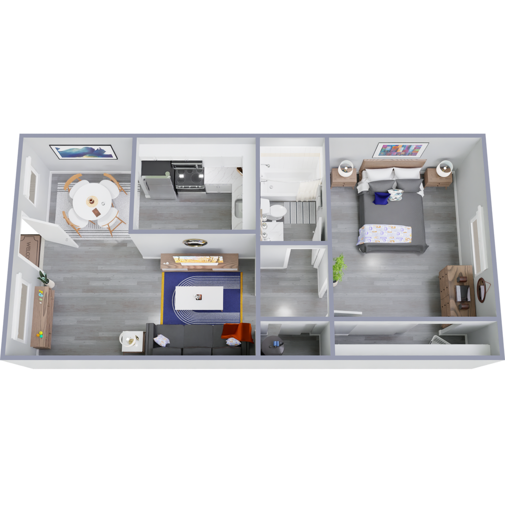 2 Dormitorios, 1 Baño, 875 pies²Precio Mensual TotalDisponible AhoraGalería del Modelo