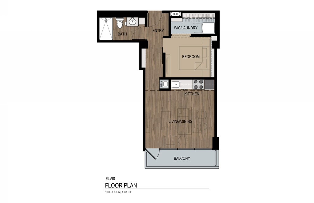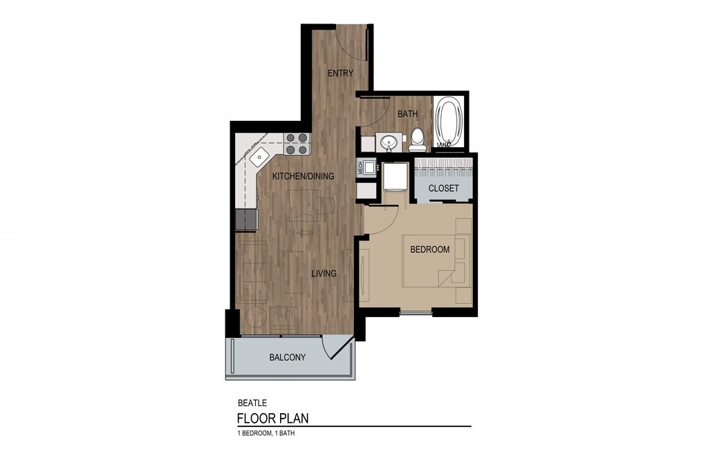 1 Dormitorio, 1 Baño, 500 pies²Disponible AhoraGalería del Modelo