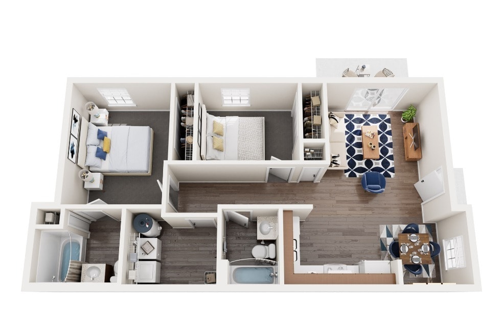 2 Dormitorios, 2 Baños, 1000 pies²Galería del Modelo