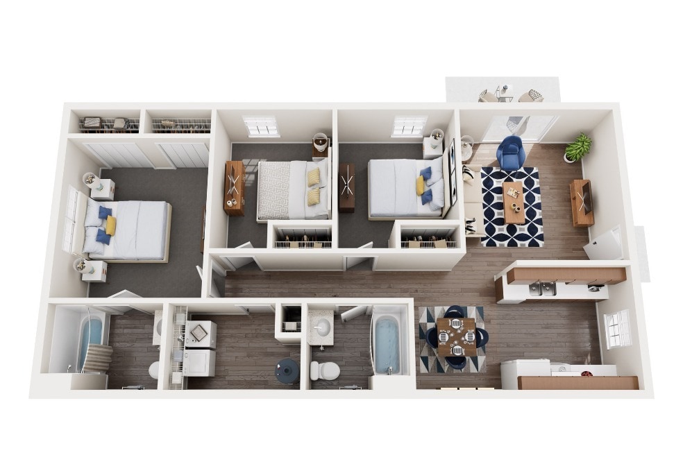 Modelo de apartamento: 3B Ranch$1,4003 Dormitorios, 2 Baños, 1200 sq ftDisponible Ahora3B Ranch - Plano 1 3B Townhome