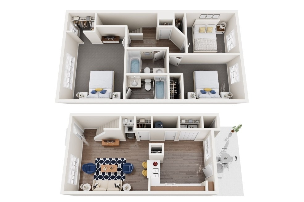 Modelo de apartamento: 3B Townhome$1,4003 Dormitorios, 2 Baños, 1330 sq ftDisponible Ahora3B Townhome - Plano 1