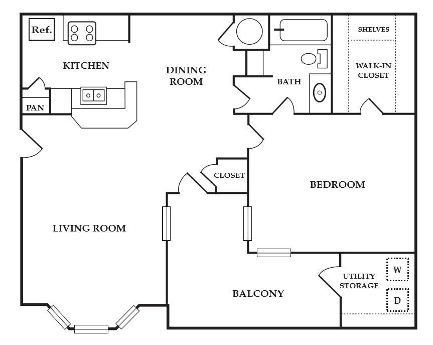 1 Dormitorio, 1 Baño, 686 pies²Disponible AhoraGalería del Modelo