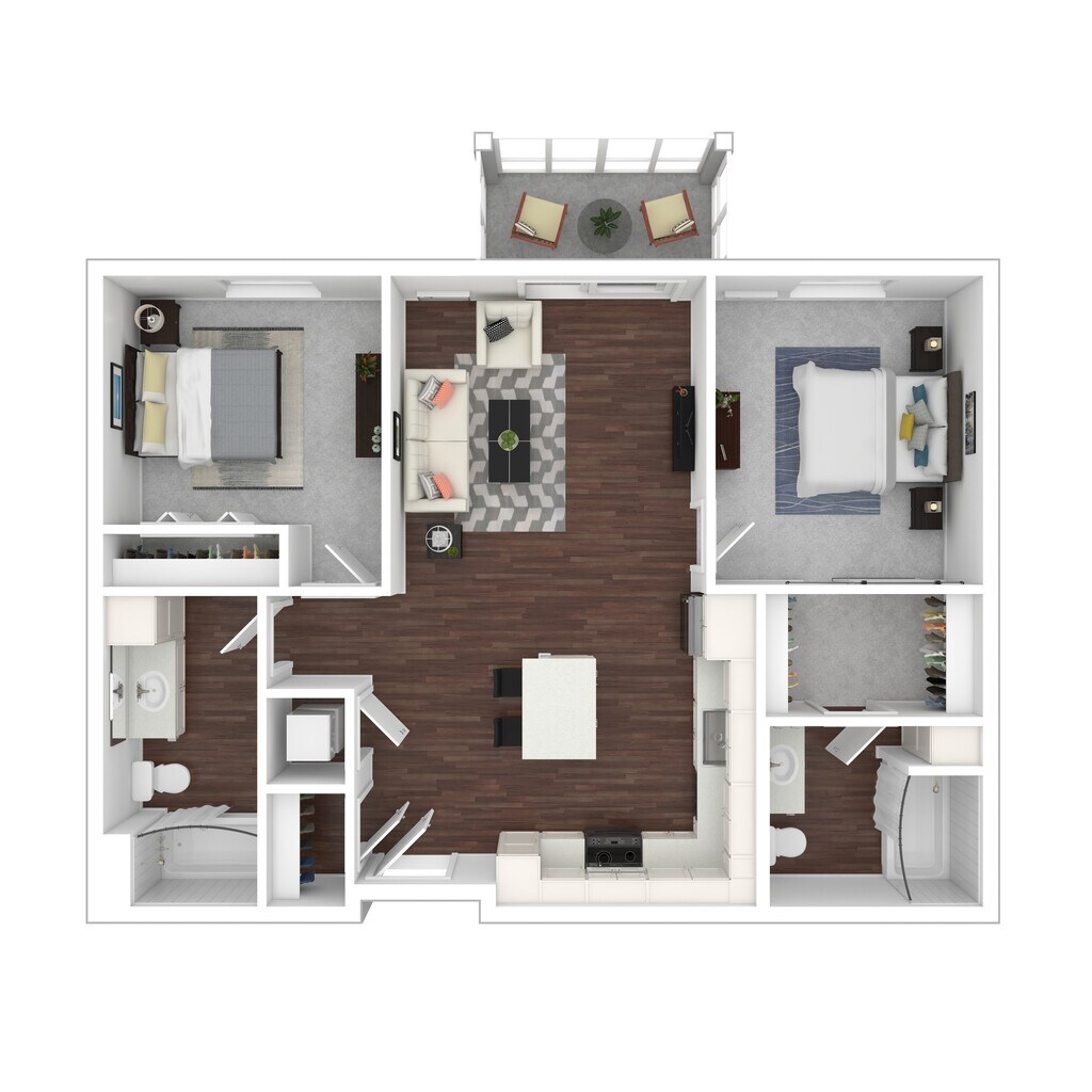 Modelo de apartamento: Spruce$1,7202 Dormitorios, 2 Baños, 903 sq ftDisponible June 1, 2026![]()