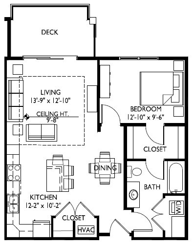 1 Dormitorio, 1 Baño, 838-841 pies²Precio Mensual TotalDisponible AhoraGalería del Modelo
