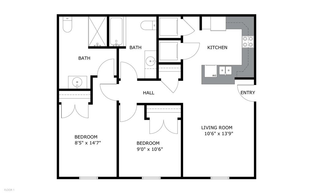Modelo de apartamento: B12 Dormitorios, 2 Baños, 1077 sq ftDisponible Ahora![]()