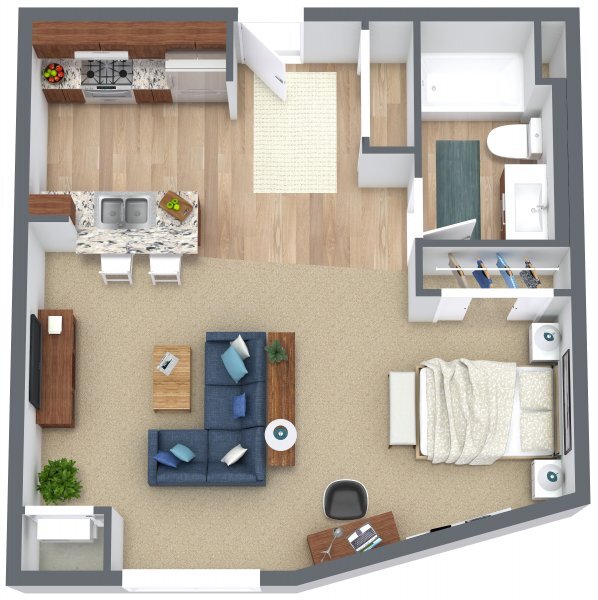 Modelo de apartamento: Studio-Loft A$1,310Estudio, 1 Baño, 630 sq ftDisponible AhoraStudio-Loft A - Plano 1 1 Dormitorio