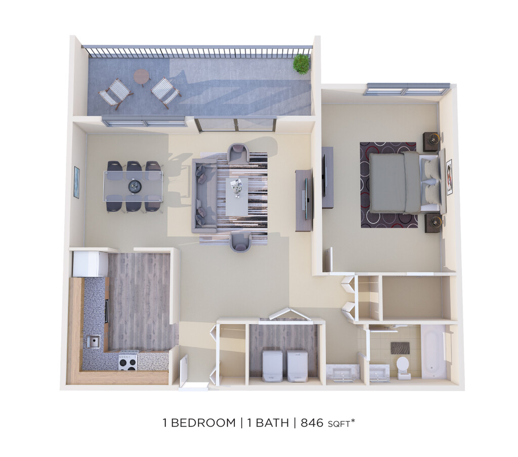 1 Dormitorio, 1 Baño, 846 pies²Disponible AhoraGalería del Modelo