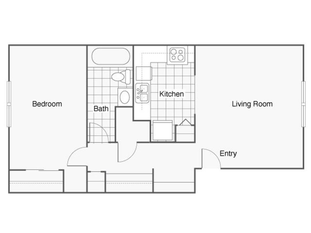 2 Dormitorios, 1 Baño, 825 pies²Disponible AhoraGalería del Modelo