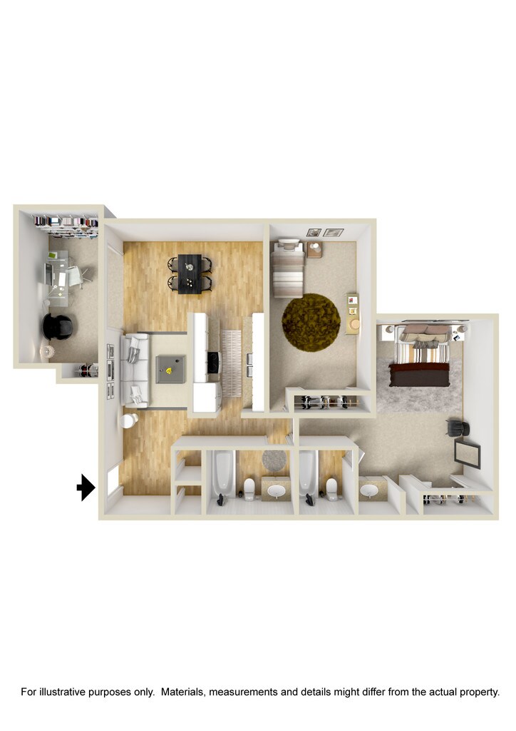 Modelo de apartamento: 2 Bedroom 2 Bath Den2 Dormitorios, 2 Baños, 1156 sq ftDisponible Ahora![]()