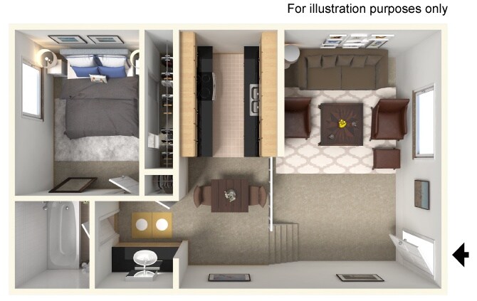 Modelo de apartamento: 1 Bedroom 1 Bath Split Level1 Dormitorio, 1 Baño, 578 sq ftDisponible Ahora![]()