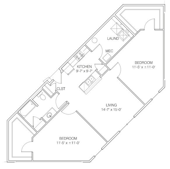 2 Dormitorios, 1 Baño, 954 pies²Galería del Modelo