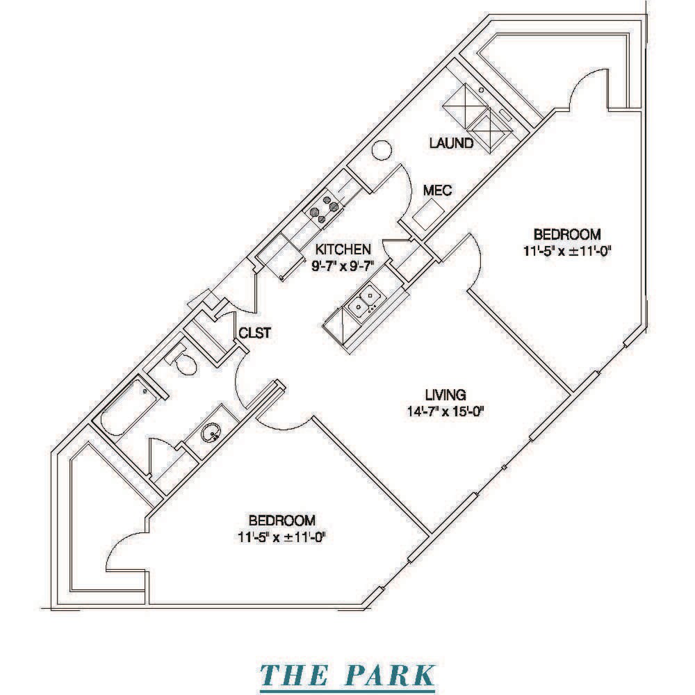 Modelo de apartamento: The Park 50%2 Dormitorios, 1 Baño, 1272 sq ftNo Disponible![]()