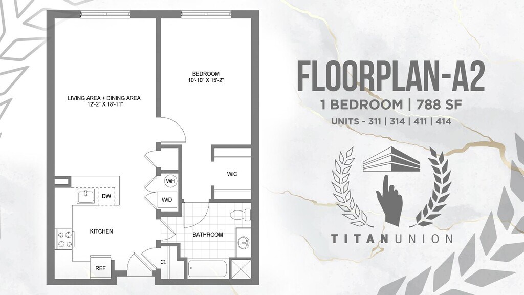 Unidad: 414 - Imagen 3 Unidad de apartamento: 204Modelo de apartamento: 1BR/1.0BA1 Dormitorio, 1 Baño, 775 sq ftDisponible March 16, 2026![]()