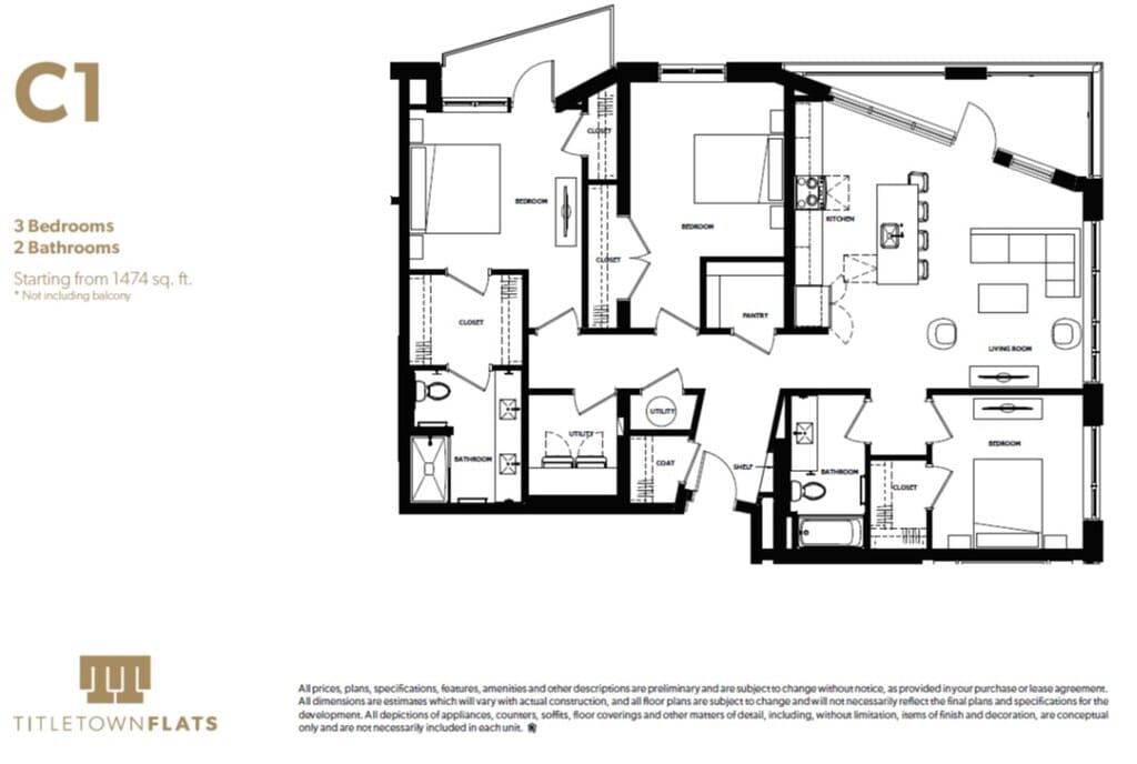 TitletownFlats ofrece apartamentos de Estudio a 3 Dormitorios desde $1,275 con 440–1,482 pies cuadrados. Aquí está el precio actual y la disponibilidad: