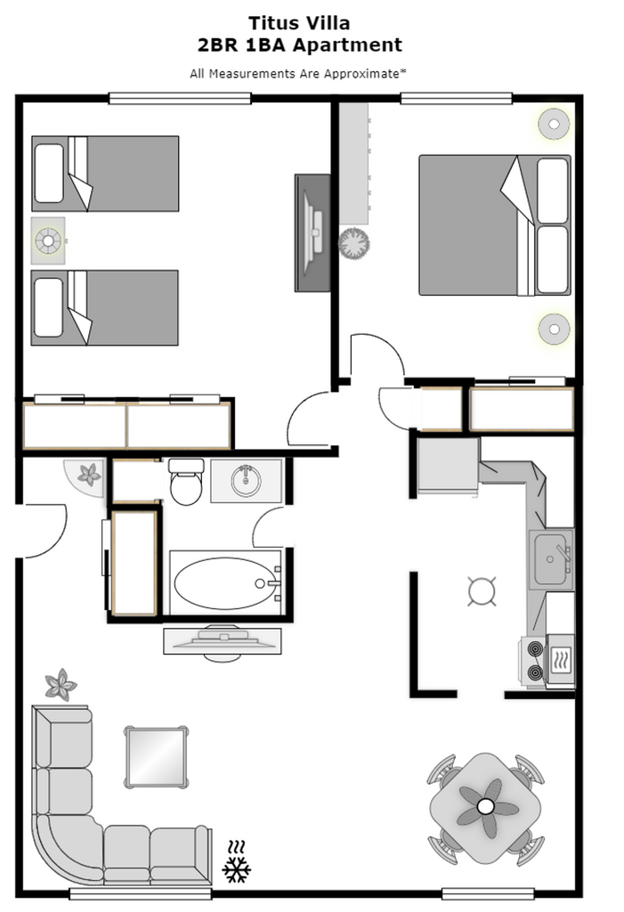 Titus Villa Apartments ofrece apartamentos de 2 Dormitorios desde $1,400 con 950 pies cuadrados. Aquí está el precio actual y la disponibilidad: