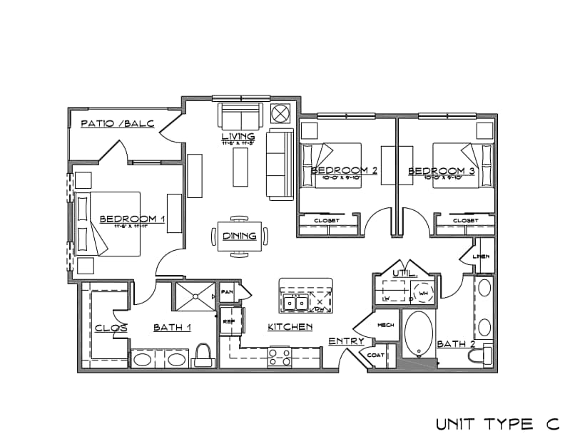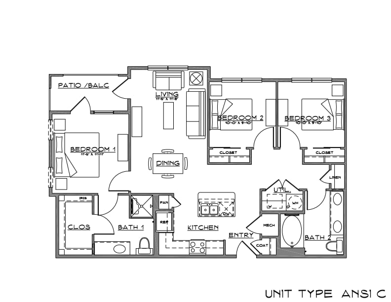 C1 - 3 Bed | 2 Bath | 60 - Plano 1