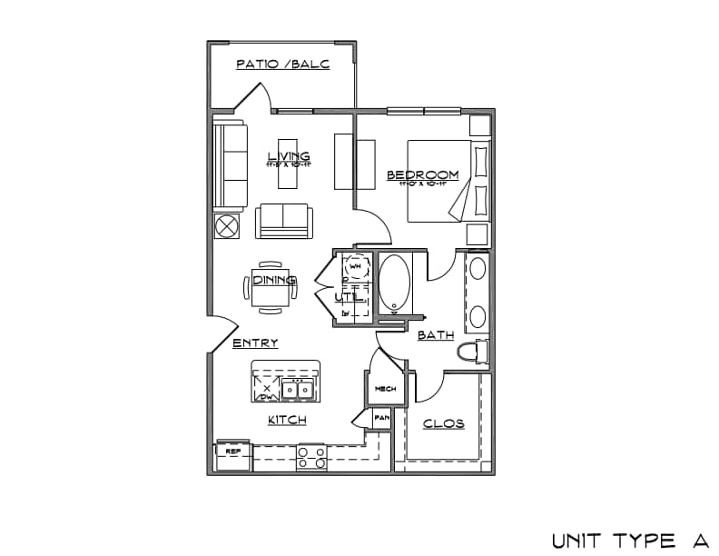 Modelo de apartamento: A1 - 1 Bed | 1 Bath | 301 Dormitorio, 1 Baño, 703 sq ftNo Disponible![]()