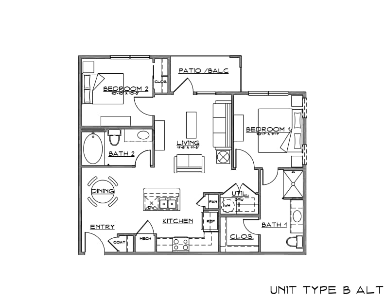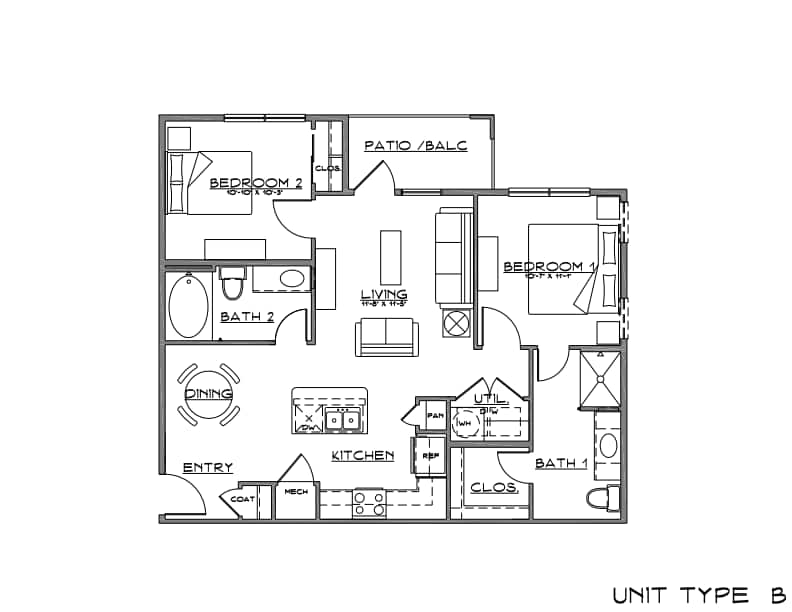 B1 - 2 Bed | 2 Bath | 60 - Plano 1 3 Dormitorios