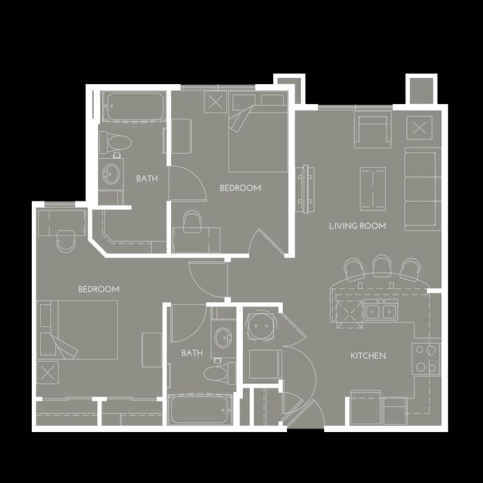 Modelo de apartamento: B22 Dormitorios, 2 Baños, 851 sq ftNo Disponible![]()