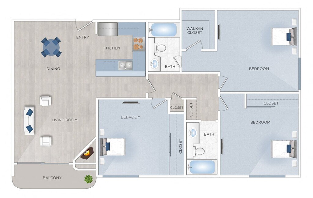 3 Dormitorios, 2 Baños, 1190 pies²El más grandeEsta opción tiene las unidades más grandes para este modeloGalería del Modelo