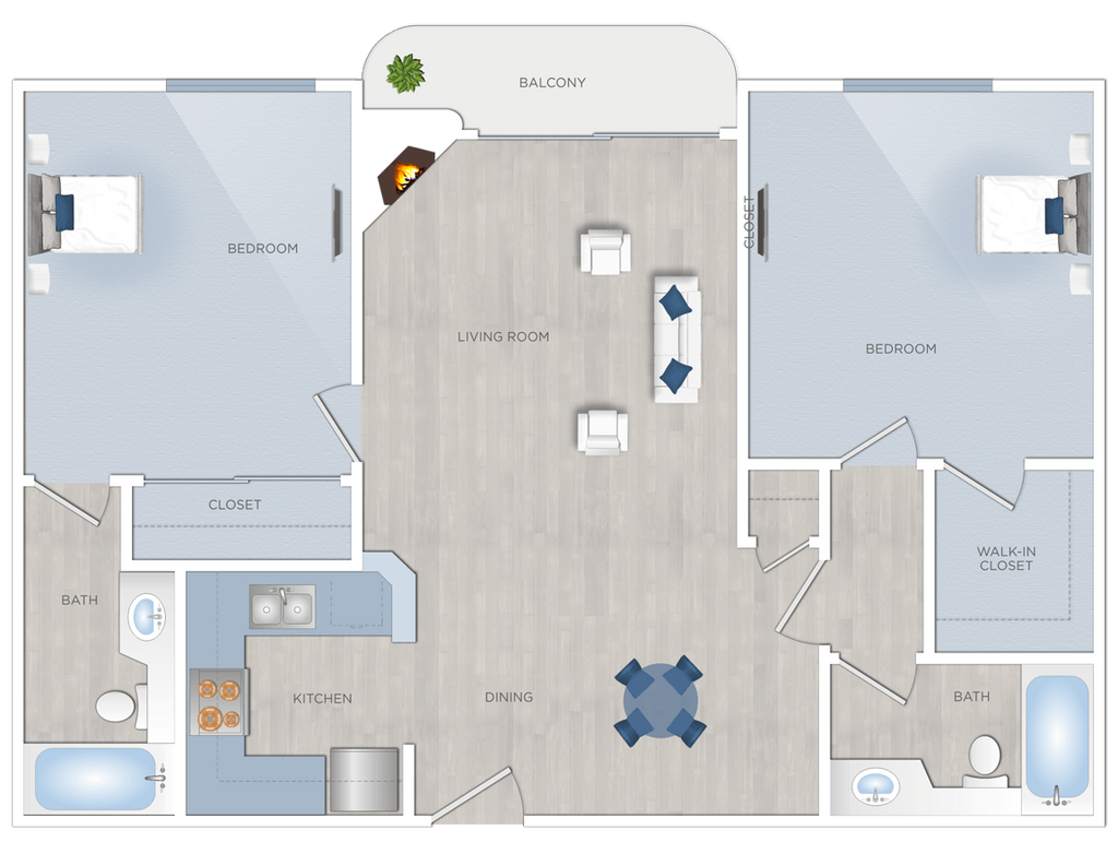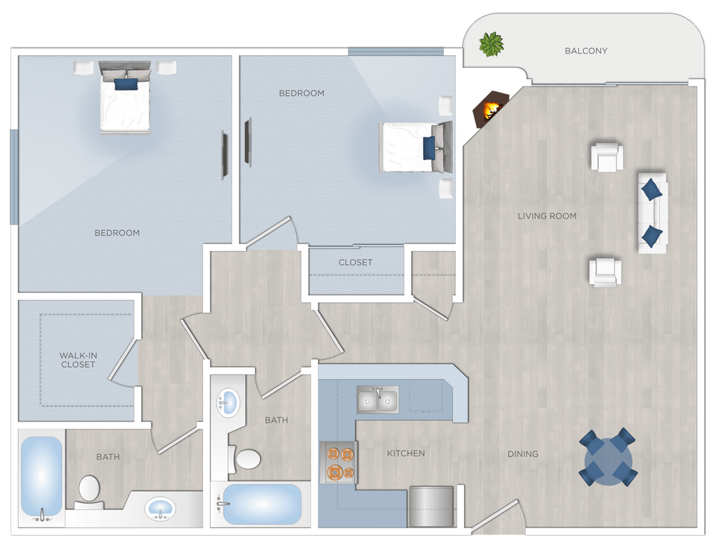 Modelo de apartamento: D2 Dormitorios, 2 Baños, 860 sq ftDisponible pronto![]()